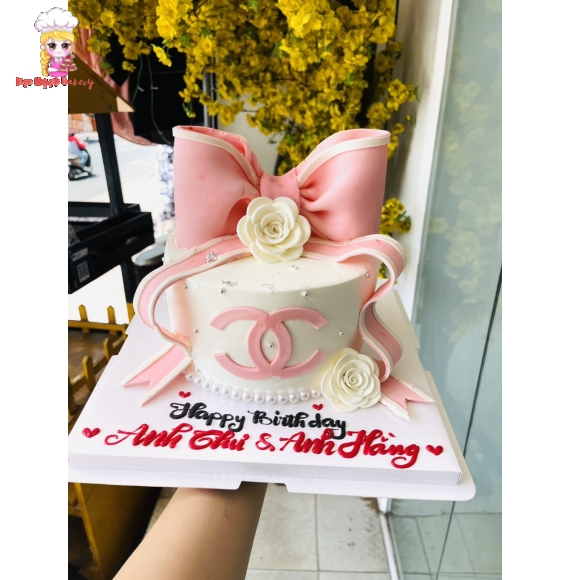 Bánh kem mẫu chanel Hồng trắng 03