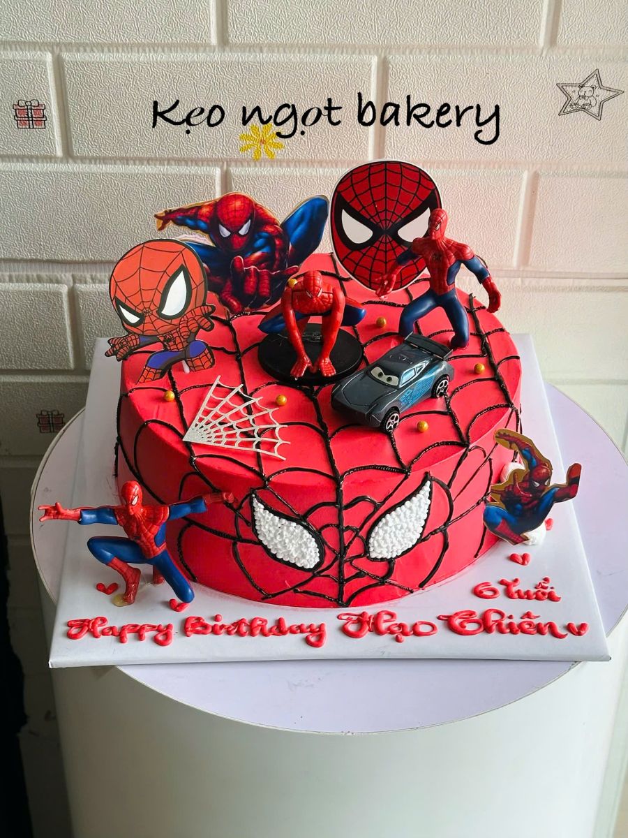 Các mẫu bánh kem siêu nhân nhện hay biệt đội anh hùng luôn nằm trong top lựa chọn. Hình ảnh mạnh mẽ, màu sắc nổi bật giúp bé cảm thấy hào hứng hơn trong ngày sinh nhật.