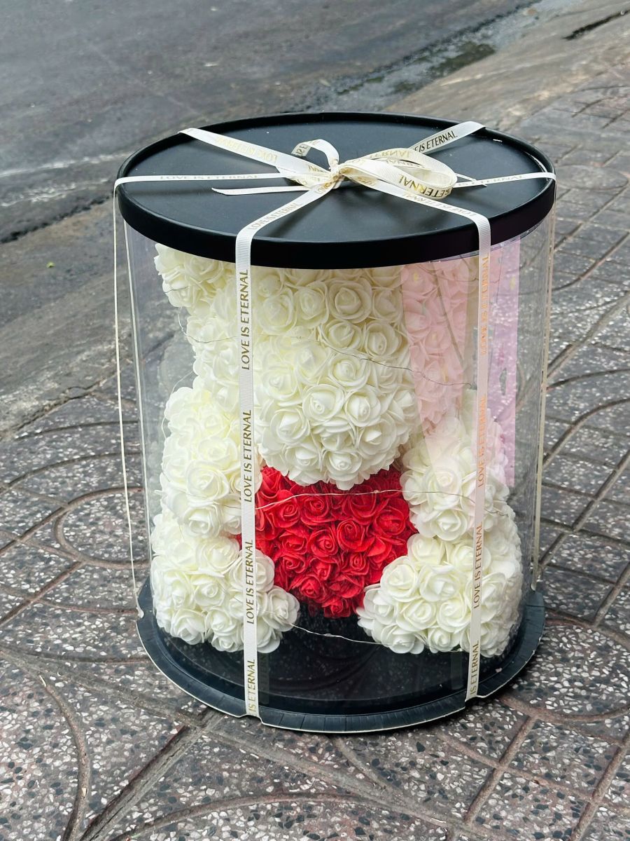 Hoa làm giống gấu kèm hộp quà