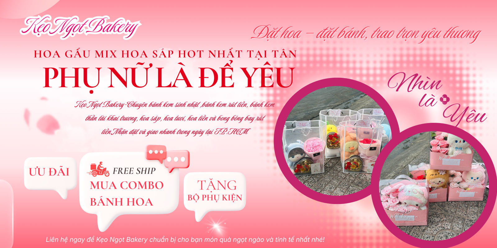 Với nhiều mẫu thiết kế đa dạng như hoa gấu bông mix hoa sáp, hoa sáp gấu bông tone hồng hay các mẫu hộp quà sáng tạo, Kẹo Ngọt Bakery đang là địa chỉ được nhiều khách hàng lựa chọn khi tìm kiếm món quà tặng ý nghĩa.
