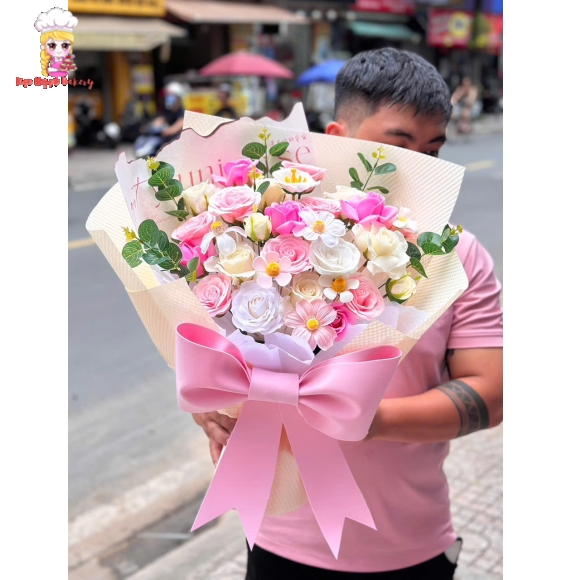 Hoa sáp tone hồng kèm nơ lớn tặng ngày lễ 20/10