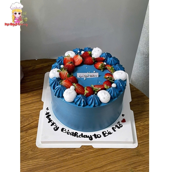 4. Bánh kem dâu tây tone xanh tặng em