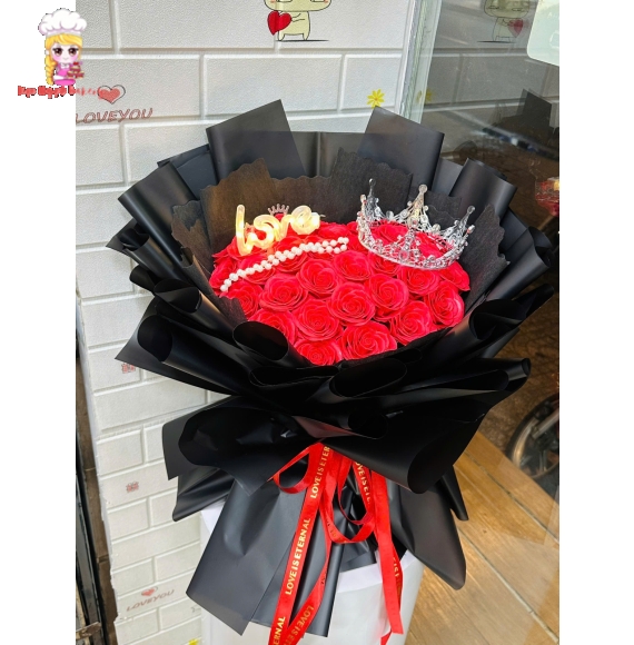 Mẫu bó hoa sáp tone đỏ hot 2026 kèm chữ love