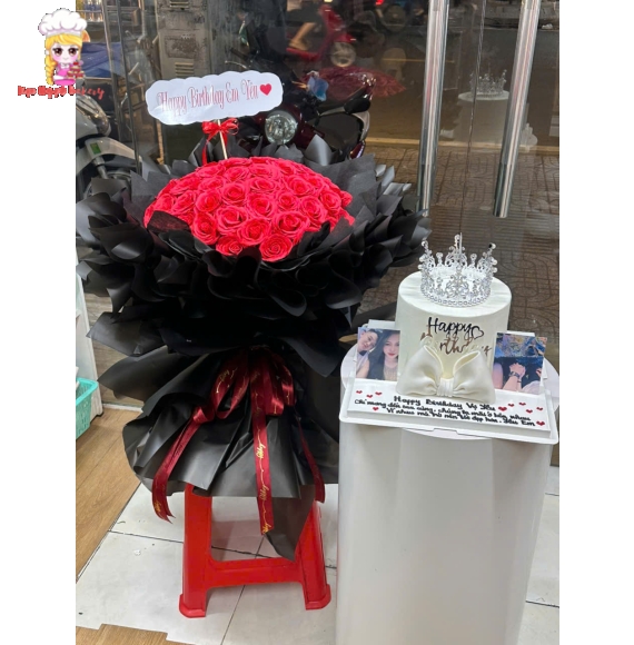 Được yêu thích trong các dịp sinh nhật, kỷ niệm tình yêu, lễ cầu hôn hay khai trương, combo này tạo nên sự choáng ngợp ngay từ ánh nhìn đầu tiên.