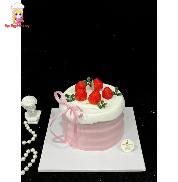 Bánh Kem hàn quốc đơn giản tone hồng kèm dâu tây