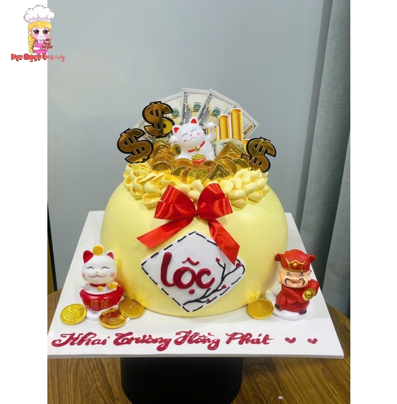 Bánh kem hủ vàng mừng khai trương chữ lộc