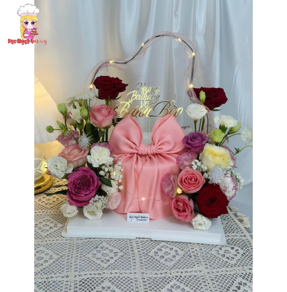 Bánh Nơ Fondant Luxury Tone Hồng Tặng Vợ