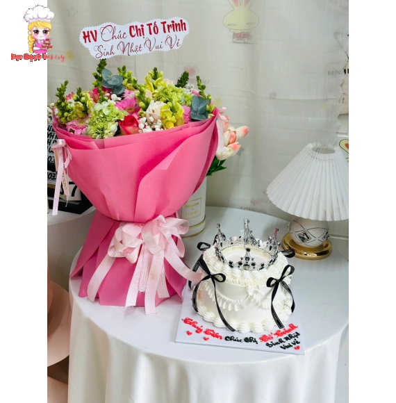 Combo hoa tươi bánh kem kèm bánh kem thổi kim tuyến