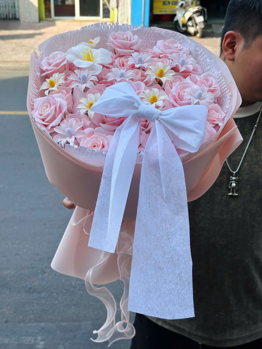 Tham khảo sản phẩm:https://keongotbakery.com/bo-hoa-sap-tone-hong-tang-nguoi-yeu